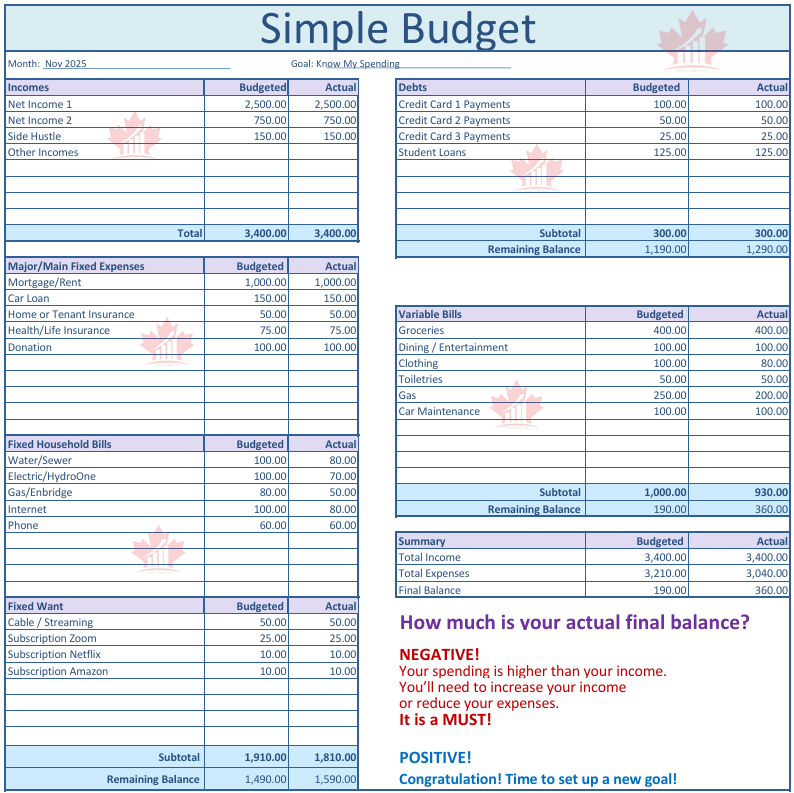 A simple budget creates space. Space to think clearly. Space to make choices. Space to see money without stress.